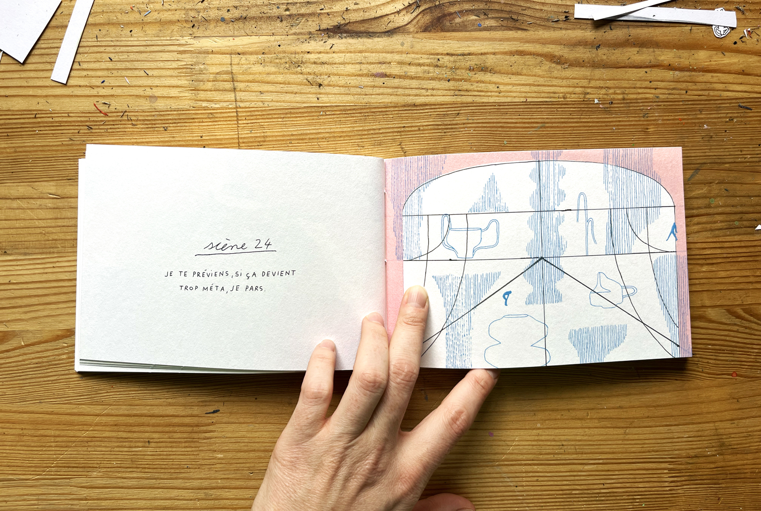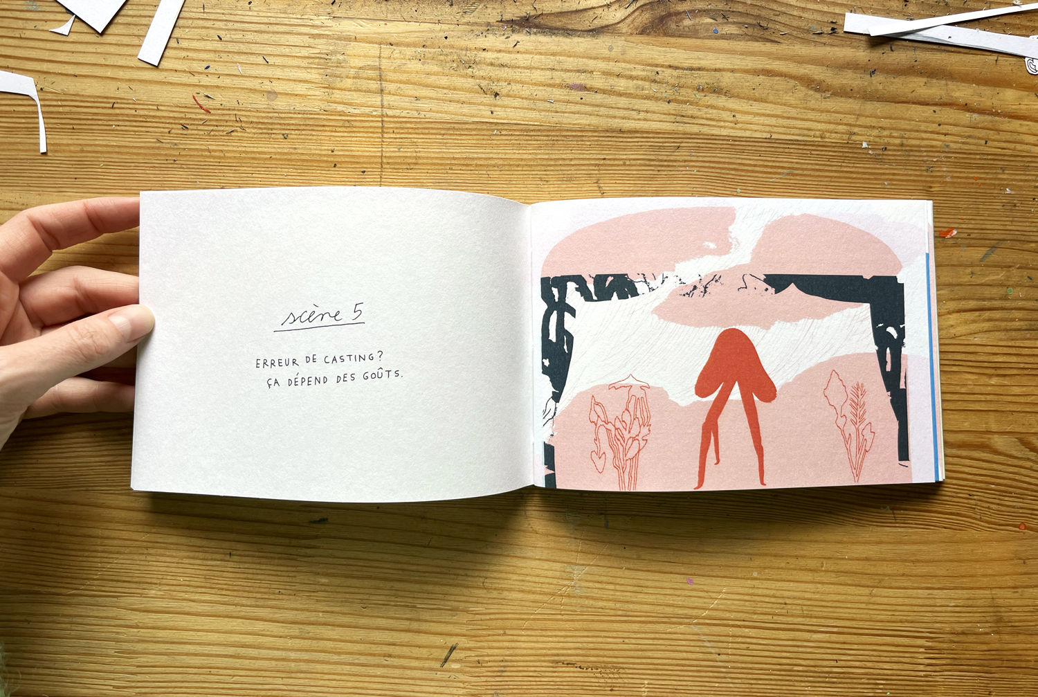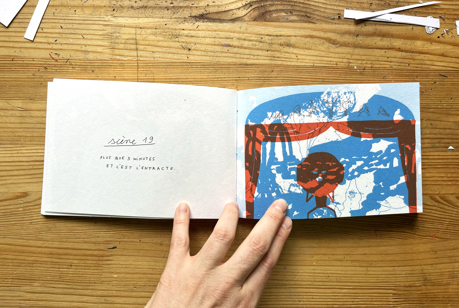 Publication regroupant 32 scènes de théâtre réalisées avec Fred Fivaz pendant une résidence d’expérimentation en sérigraphie à l’espace eeeeh !