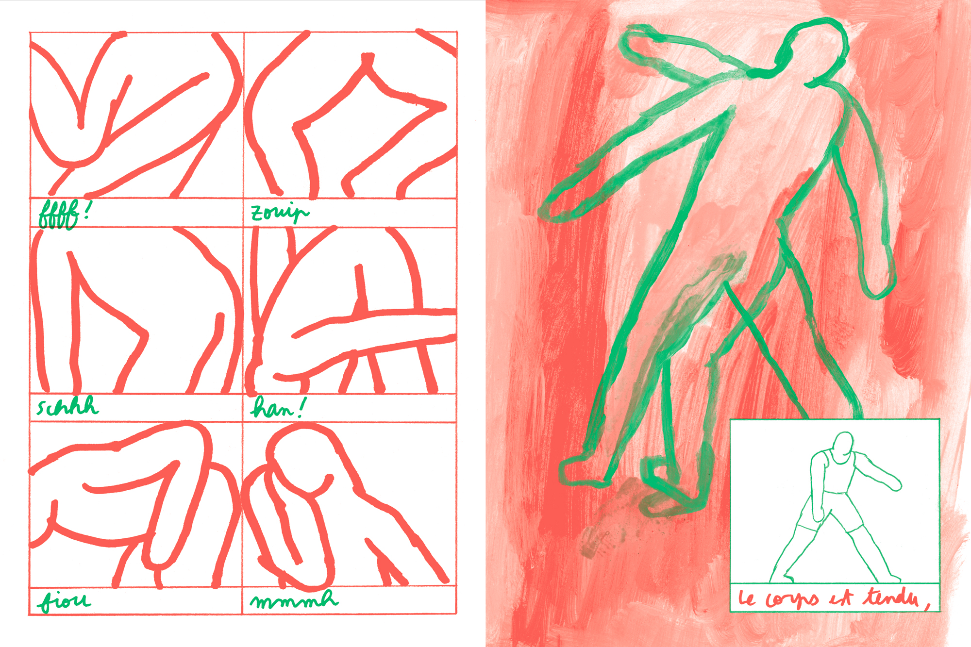 Leaflet for Pavillon ADC (Geneva, CH): 24 pages about dancing, through emotions, movements, sounds, narration, quotes… Printed in duotone, 2022.